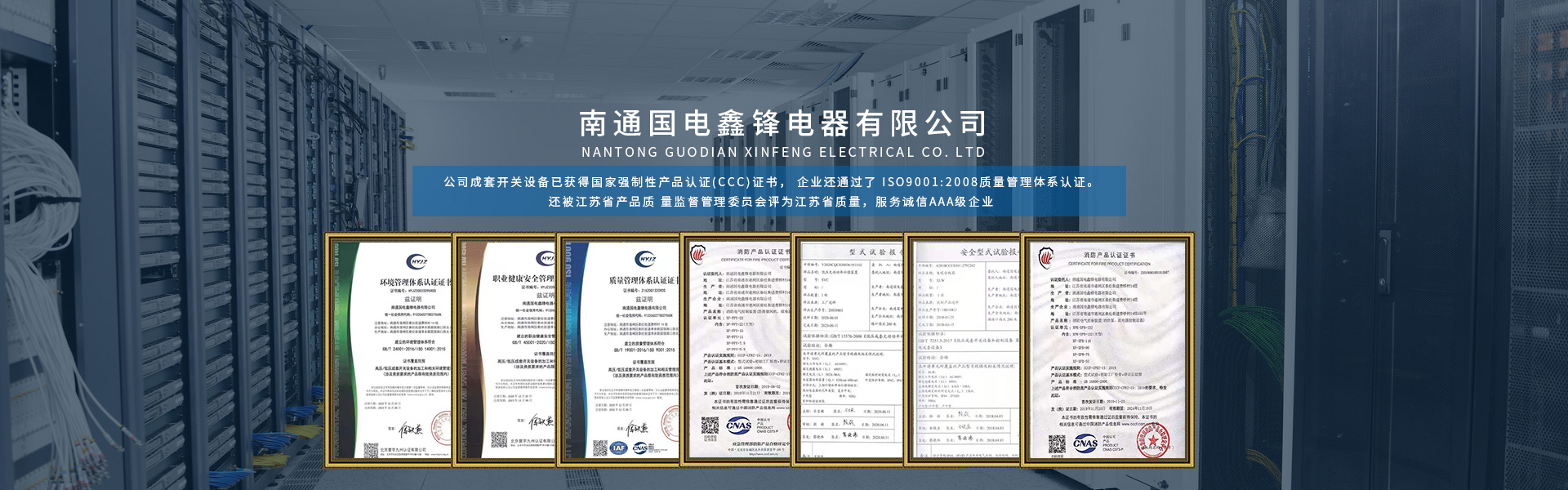 南通國電鑫鋒電器有限公司座落在有中國江蘇省南通市,南通是全國首批十四個沿海對外開放城市之一,是我國 民族紡織工業(yè)的搖籃和長江沿線的港口城市,又是中國的體育之鄉(xiāng), 教育之鄉(xiāng)崛起中的南通是江海大地上一顆璀燦的明珠。 公司成立于2005年,是專業(yè)生產(chǎn)各類高低壓成套開關(guān)設(shè)備的專業(yè)廠家,公司成套開關(guān)設(shè)備已獲得國家強(qiáng)制性產(chǎn)品認(rèn)證(CCC)證書, 企業(yè)還通過了 ISO9001:2008質(zhì)量管理體系認(rèn)證。